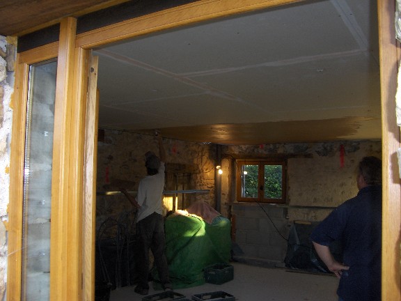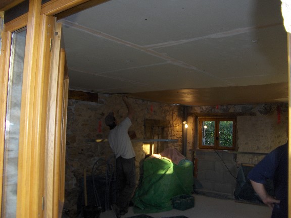 With work being a lot less hectic we were able to spend weekend days working on the house, we have 7 bags of finish plaster to use up before Marc goes back so plaster boarding is the priority at present.