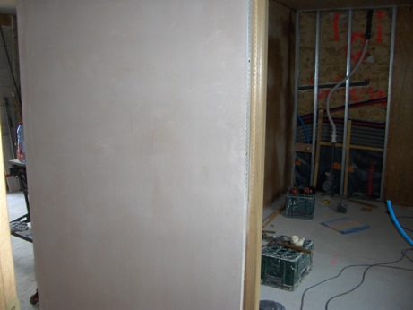 As we are having an "Italian" shower we used marine ply for constructing the wall in that area.