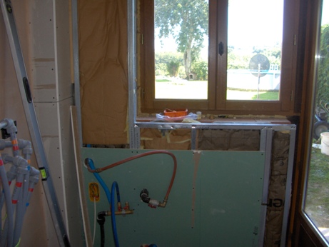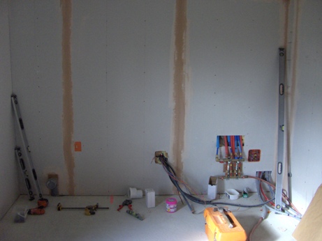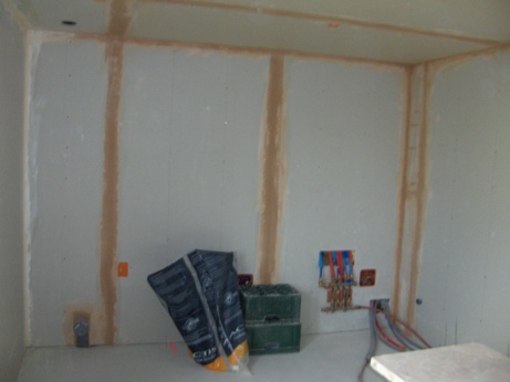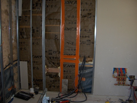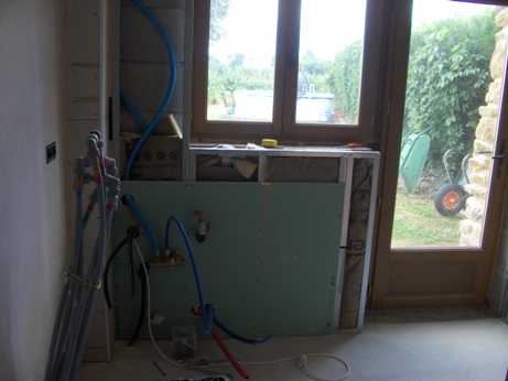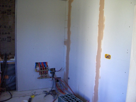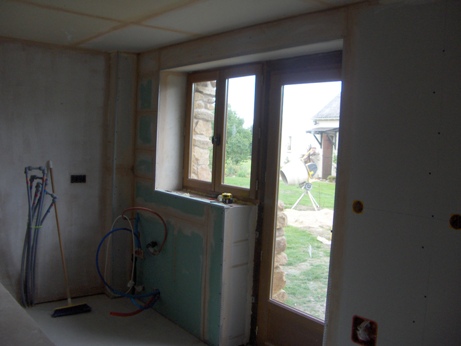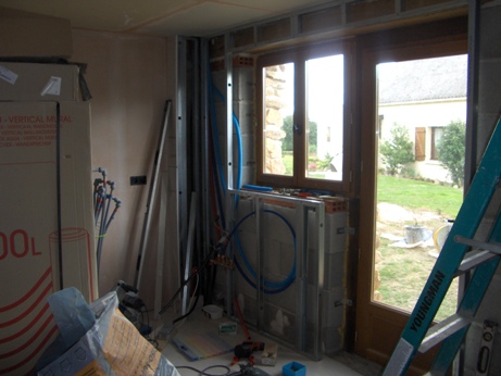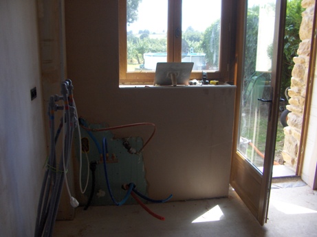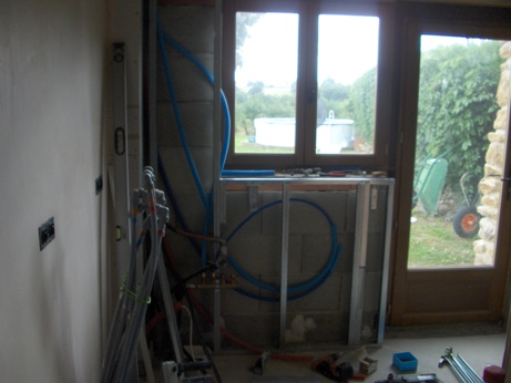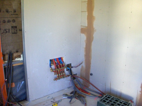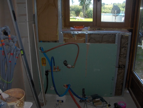 Boarded and manifolds installed, a second hot water tank will sit here when the floor has been tiled.